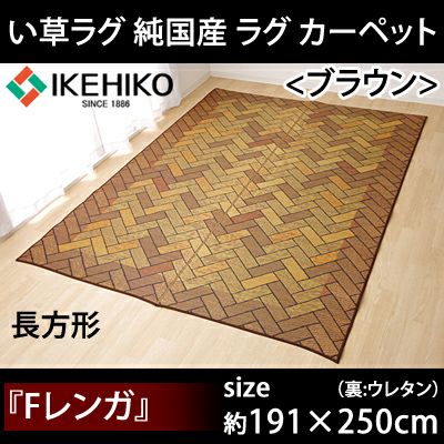 他の画像を見る 送料無料 イケヒコ・コーポレーション い草ラグ 純国産 ラグ カーペット 約3畳 『Fレンガ』 約191×250cm 裏:ウレタン 1714630 BR ブラウン 当店特別価格 ¥ 23,880 税込 送料無料 カートに入れる お気に入りに登録する
