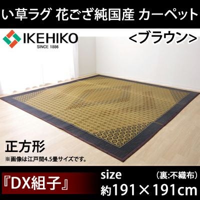 他の画像を見る 送料無料 イケヒコ・コーポレーション い草ラグ 花ござ カーペット ラグ 約2畳 純国産 『DX組子』 約191×191cm 裏:不織布 1715320 BR ブラウン 当店特別価格 ¥ 23,980 税込 送料無料 カートに入れる お気に入りに登録する