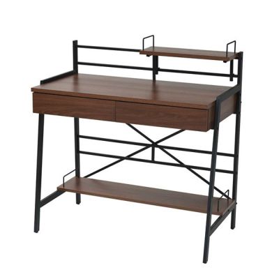 ■本体にはメラミン樹脂シートを採用しているので、耐熱性・耐水性・耐傷性に優れています。木目とスチールの組み合わせがスタイリッシュなデスクです。