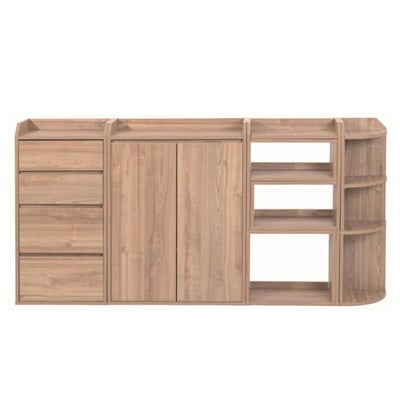 ■カウンター下やリビングの窓下など、部屋のデッドスペースを有効利用できる家具シリーズ。■コーナーラック+伸縮ラック+扉付き収納+チェストのフルセット■[外寸]【チェスト】幅40.0×奥行22.0×高さ80cm【扉付き収納】幅60.0×奥行22.0×高さ80cm【伸縮ラック】幅40.0~72.0×奥行22.0×高さ80cm【コーナーラック】幅22.0×奥行22.0×高さ80cm(金具小使用時)高さ82.5~90cm(金具大使用時)高さ90~97.5cm■その他サイズ:[内寸]【チェスト】(上オープン部)幅36.5×奥行20.0×高さ5.0cm(引出し)幅32.5×奥行16×高さ 1段目:9 / 2段目:8 / 3段目:13 / 4段目:13.0cm【扉付き収納】(上オープン部)幅56.5×奥行20.0×高さ5.0cm(扉内)幅56.5×奥行18.5×高さ65.5(最大71.5)cm【伸縮ラック】(上オープン部左)幅0~31×奥行20.0×高さ6.5cm(上オープン部右)幅36.5×奥行18.5×高さ5.0cm(2段目左)幅35.0×奥行20×高さ15cm(2段目右)幅0~31.5×奥行21.5×高さ18.5cm(3段目左)幅0~31.5×奥行21.5×高さ21.5cm(3段目右)幅35.0×奥行20.0×高さ18.5cm(4段目左)幅35.0×奥行19×高さ30cm(4段目右)幅0~31.5×奥行21.0×高さ33cm【コーナーラック】(上オープン部)幅20×奥行20×高さ5cm(中オープン部)幅20×奥行20×高さ40.0cm(下オープン部)幅20×奥行19■材質:[本体]低圧メラミン化粧繊維板■収納量・耐荷重【チェスト】[天板]約15kg以下[引出し小]約7kg以下[引出し大]約10kg以下【扉付き収納】[天板]約15kg以下[棚]約7kg以下【伸縮ラック】[最大伸長時]棚1枚約7kg以下[無伸長時]棚1枚約15kg以下【コーナーラック】[棚]各約5kg以下■備考:・突っ張り金具2種類付属・幅木避け付き・背面化粧あり■組立時間(目安)(大人2人):お客様組立(105分)■梱包:4個口
