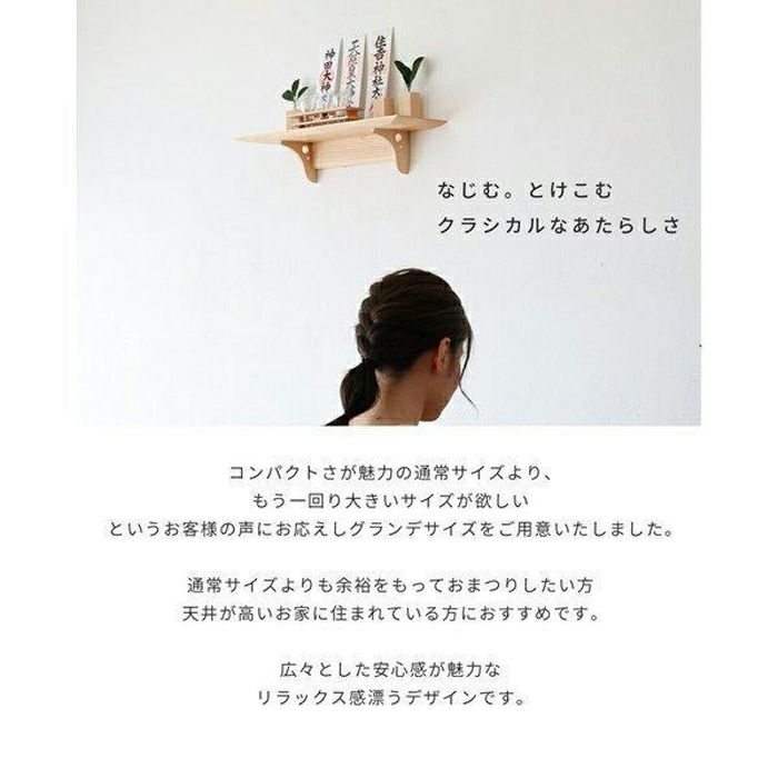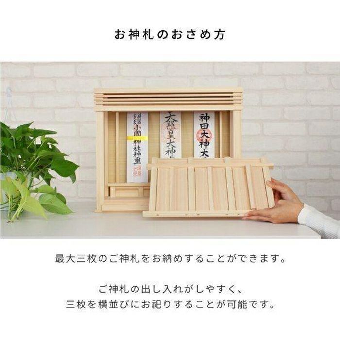 他の画像を見る 送料無料 神棚の里 神棚 屋根違い三社 つむぎ 大和棚板セット S-4993896900881 静岡木工 当店特別価格 ¥ 40,546 税込 送料無料 カートに入れる お気に入りに登録する