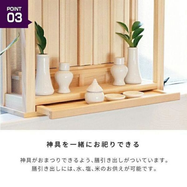 他の画像を見る 送料無料 神棚の里 神棚 屋根違い三社 つむぎ 大和棚板セット S-4993896900881 静岡木工 当店特別価格 ¥ 40,546 税込 送料無料 カートに入れる お気に入りに登録する