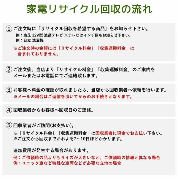 他の画像を見る リサイクル リサイクル お申込み手数料(リサイクル券料金、収集運搬費は含まれません) ※業務用は対象外 ※エアコンは対象外 当店特別価格 ¥ 1,500 税込 リサイクル カートに入れる お気に入りに登録する