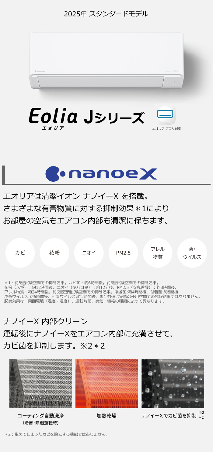 ・内部クリーン運転:コーティング自動洗浄・加熱乾燥・ナノイーXカビ抑制