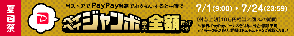 当店でPayPay決済でのお支払いなら抽選でお支払い金額の1等 最大100%が戻ってくる!