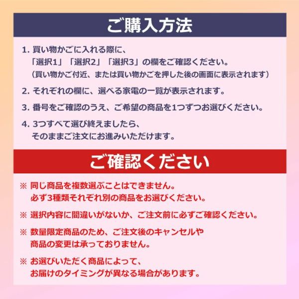他の画像を見る PCあきんど福袋2026年!!自分で中身を選べる福袋 【2026初売り】選べる福袋 5万円 竹コース お好きな家電を3点選べる! お年玉企画 新春 家電福袋 カスタム福袋 セレクト 中身選べる 2026fuku-b 当店特別価格 ¥ 50,000 税込 販売開始前です。 販売期間 2026/01/01 10:00 〜 2026/01/06 10:00 PCあきんど福袋2026年!!自分で中身を選べる福袋 詳細を見る お気に入りに登録する