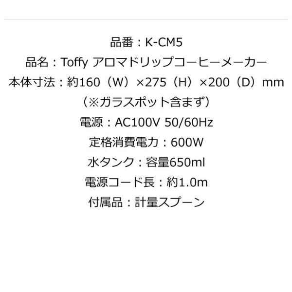 他の画像を見る 送料無料・代引き手数料無料 Toffy トフィー 5カップアロマコーヒーメーカー ドリップ式 K-CM8-AW アッシュホワイト ラドンナ 当店特別価格 ¥ 5,280 税込 在庫切れ 送料無料・代引き手数料無料 詳細を見る お気に入りに登録する