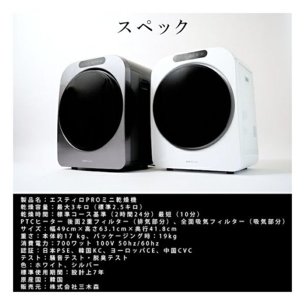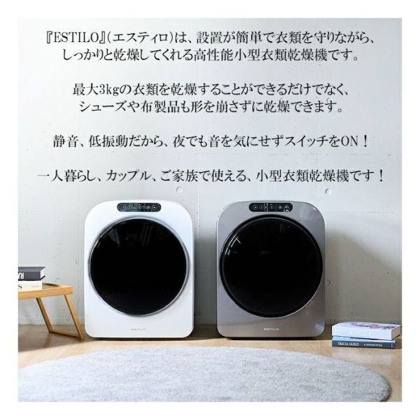 他の画像を見る 送料無料・代引き手数料無料 エスティロ 3kg 小型 衣類乾燥機 PRO ミニ乾燥機 ILD-321UPB-JP シルバー 設置工事不要 当店特別価格 ¥ 59,800 税込 送料無料・代引き手数料無料 カートに入れる お気に入りに登録する